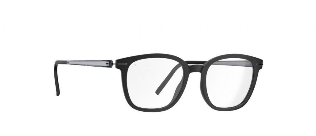 3D‑printed full‑rim frame made with SilhoPure front and titanium/SPX®+ temples; innovative lightness; sustainable materials; colour gradients on oversized shapes