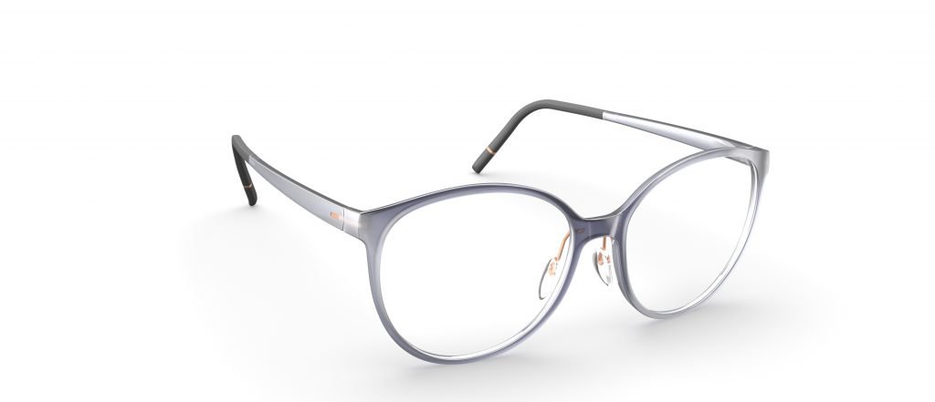 Marco de aro completo que fusiona materiales de alta tecnología con arte digital; extremadamente ligero, sin tornillos e hipoalergénico; dos talles disponibles. Colección Vivid Sky con colores artesanales únicos, fabricado en Austria.